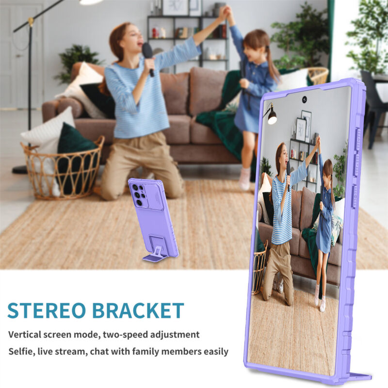 Introducing the ultimate case with built-in kickstand for Samsung S23 that redefines protection and convenience. Crafted with a perfect blend of high-quality hard PC and soft TPU materials, this case ensures your device is always safe while enhancing your daily mobile experience.